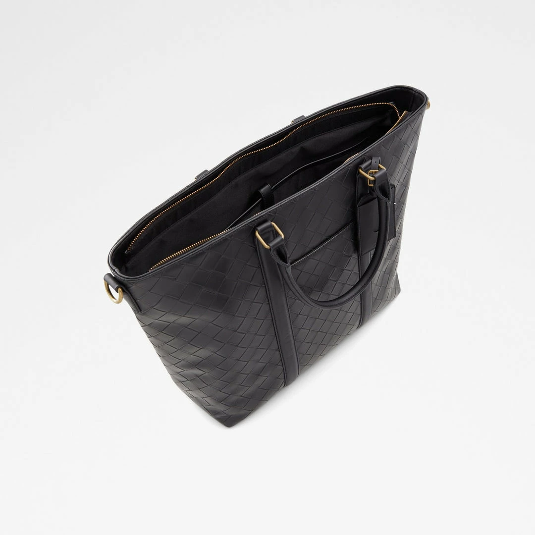 #Style Notes *Mens woven tote with non-removable luggage tag, front slash pocket, back travel sleeve and interior 15″ laptop compartment feature. #Details *Tote *Top Zipper *Luggage Tag *Removable Adjustable Crossbody Strap *Colour: Black/Black #Materials *Main: Synthetic #Measurements *Handle Drop Length: 7.00 In (17.78 Cm) *Strap Drop Length: 21.00 In (53.34 Cm) *Bag Dimensions: 37 Cm X 50 Cm X 21 Cm