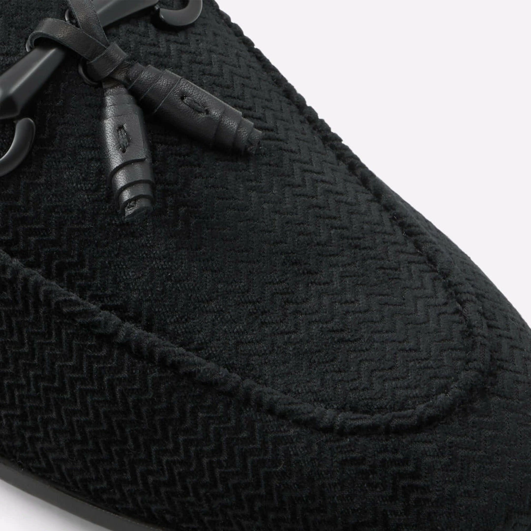#Style notes *Obtain maximum style with minimal effort in these rich velvet loafers adorned with a sleek ornament. #Details * Loafer * Almond toe * Slip on * Colour Black #Materials *Upper: Textile *Sole: Rubber