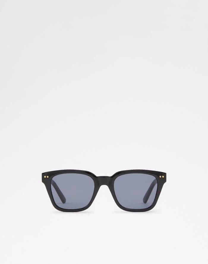 #Style Notes *Add a bold touch to your accessory collection with this pair of menโs sunglasses featuring smoke-tone mono lenses. Matte black frames with metal accents rim rectangular lenses while matching arms complete the look. #Details *Colour: Black