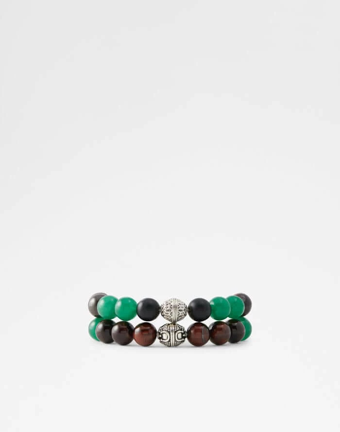 #Style Notes *Channel your inner tranquillity with this menβs bracelet made from small beads of jade. Green and dark-toned beads feature a small silver filigree closure for a touch of interest. #Details *Colour: Light Green