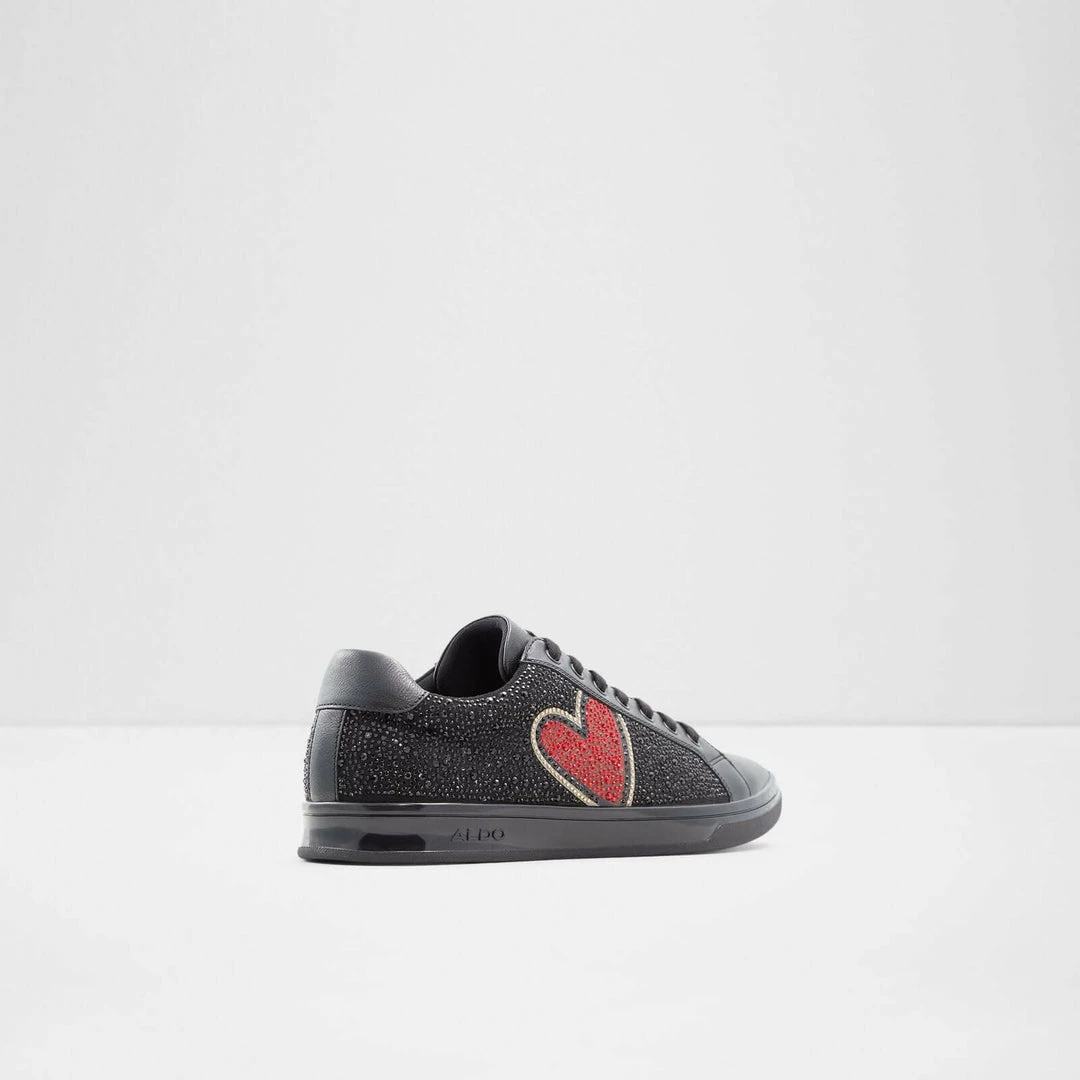 #Style notes *Your basic low top sneaker just got a new glitzy makeover. Prepare to dazzle and show off your creative side with these bold glitter shoes featuring a heart detail. #Details * Low top sneaker * Round toe * Laces closure * Colour Black #Materials *Upper: Synthetic *Sole: Rubber