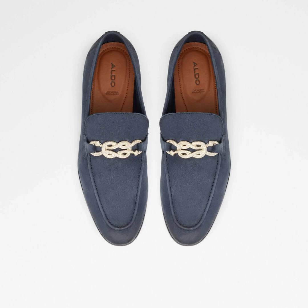#Style notes *These dressy loafers elevate your day-to-day (and take you into the night) with utter ease. Designed with an almond toe, metal ornament and flex sole, these ultra-flexible dress shoes are as stylish as they are comfortable. #Details * Loafer * Almond toe * Slip on * Metal ornament * Metal ornament * Colour Navy #Materials *Upper: Leather *Sole: Rubber