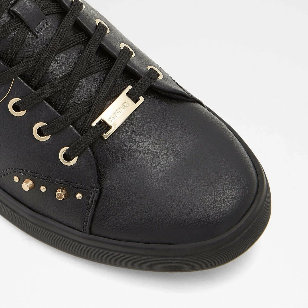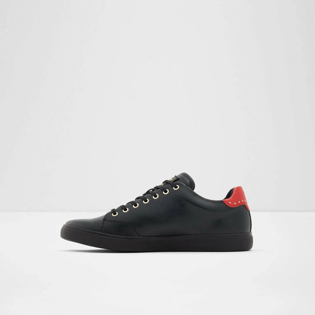 A Mickey Mouse wink goes a long way to brighten your day. What more? Gold-colored studs embellish this casual daytime to nighttime Disney-inspired sneakers for men. With a classic cupsole, this casual sneakers pairs easily with your professional daywear or after-hours engagements. #Details * Low top trainer * Round toe * Laces closure * Colour Black #Materials *Upper: Synthetic *Sole: Rubber