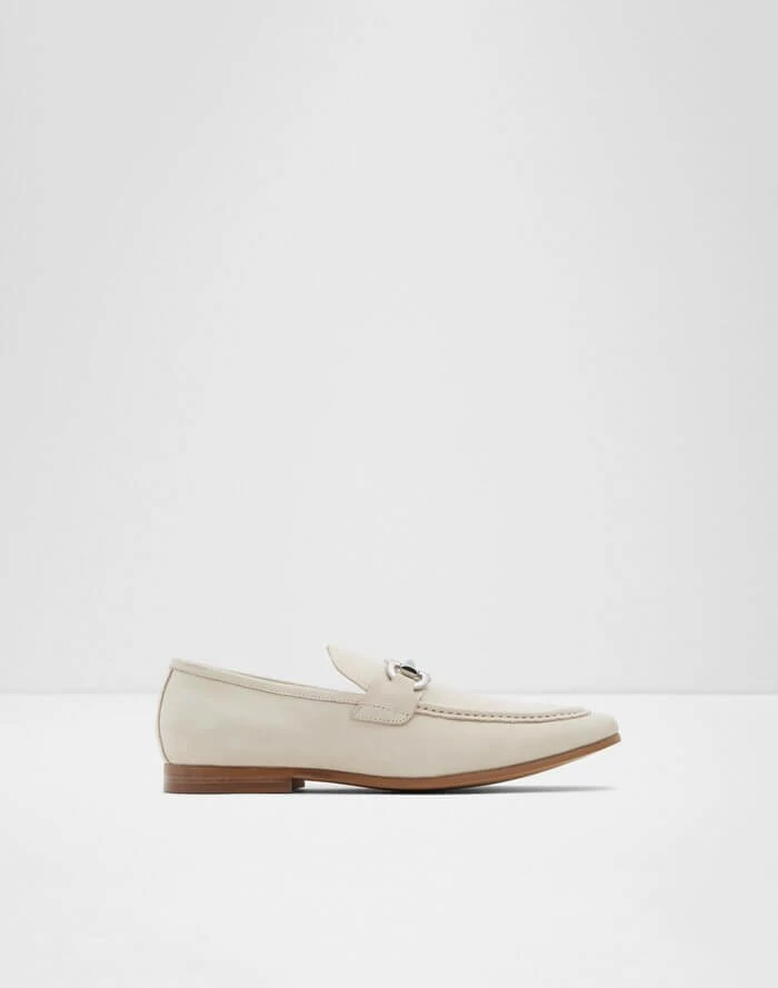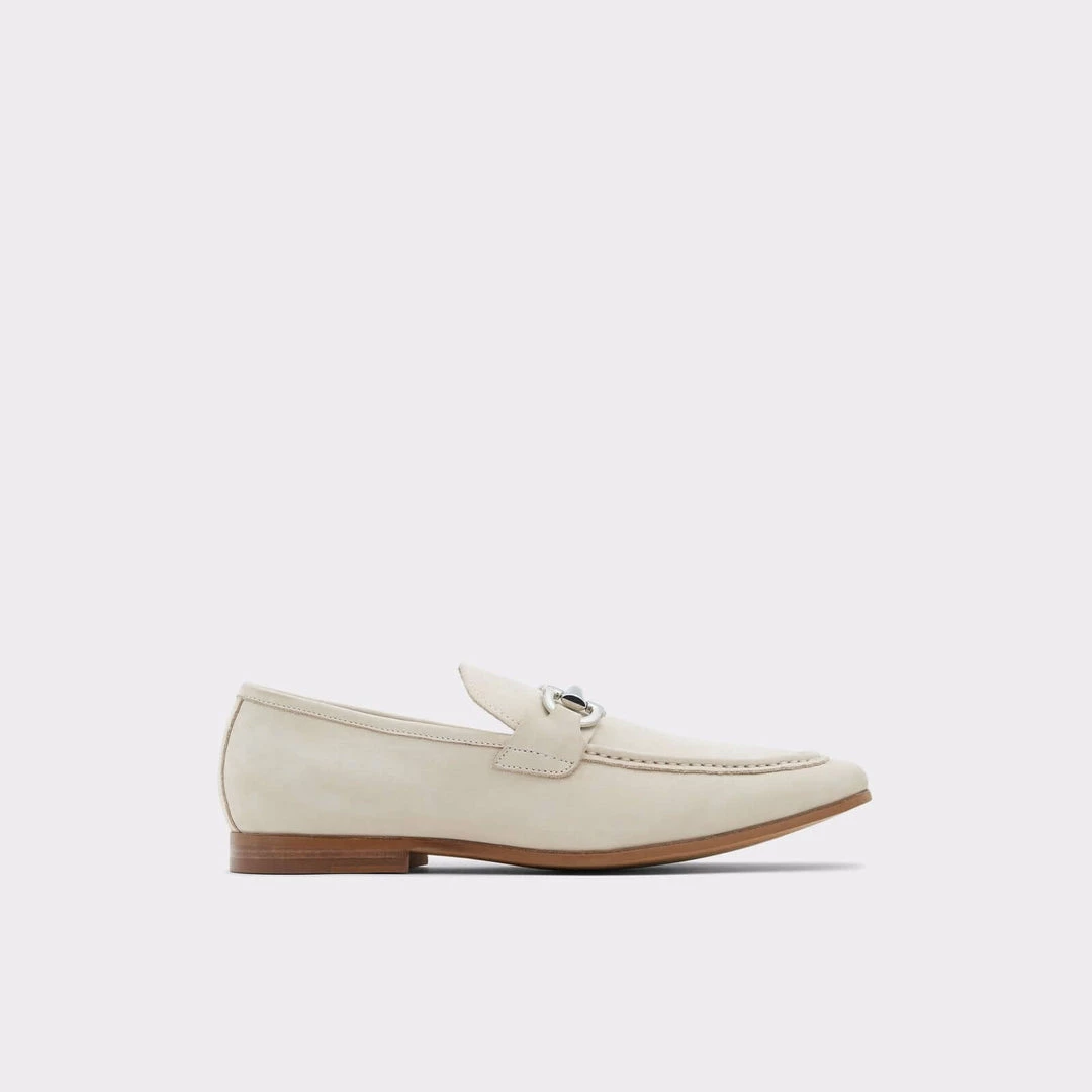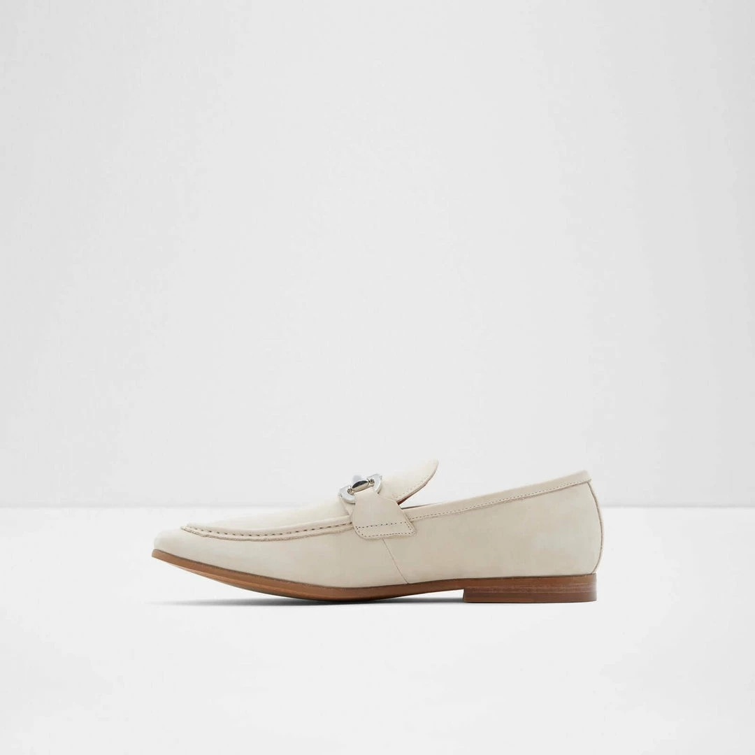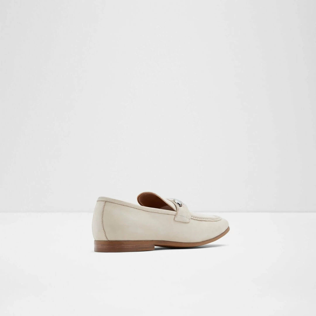 #Style notes *Meet the ultimate well-made and well-appointed men’s shoe. These casual suede loafers were designed with a refined silhouette and tailored fit that works just as well as an every-so-often shoe as a daily go-to. Buckled hardware for added flare. #Details * Loafer * Almond toe * Slip on * Colour Light Beige #Materials *Upper: Leather *Sole: Rubber