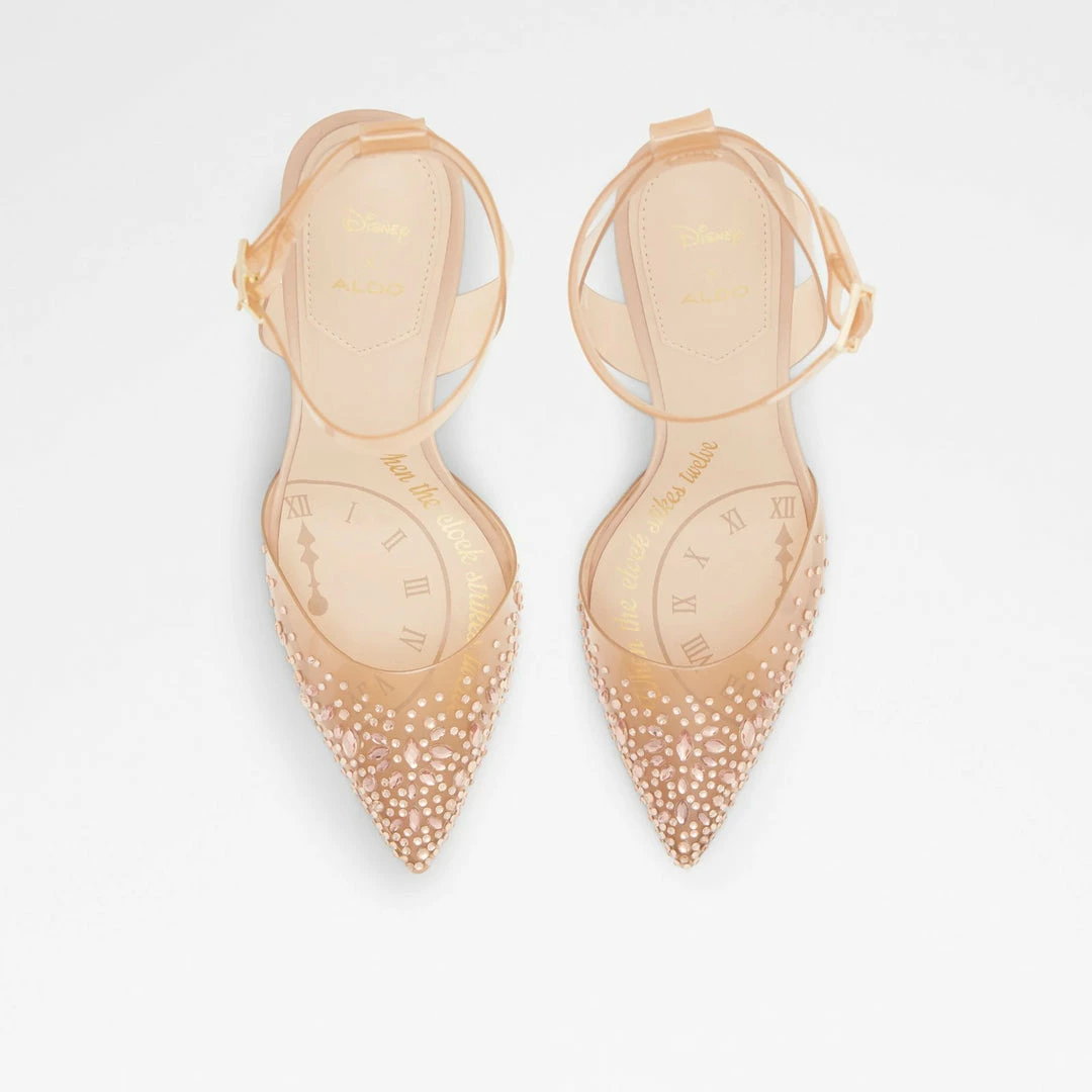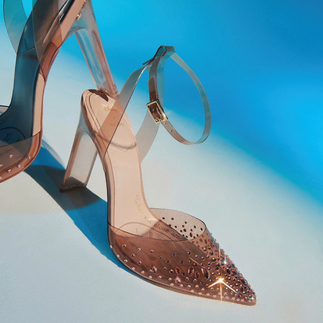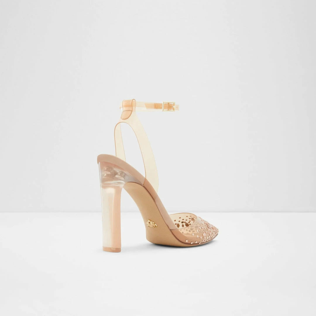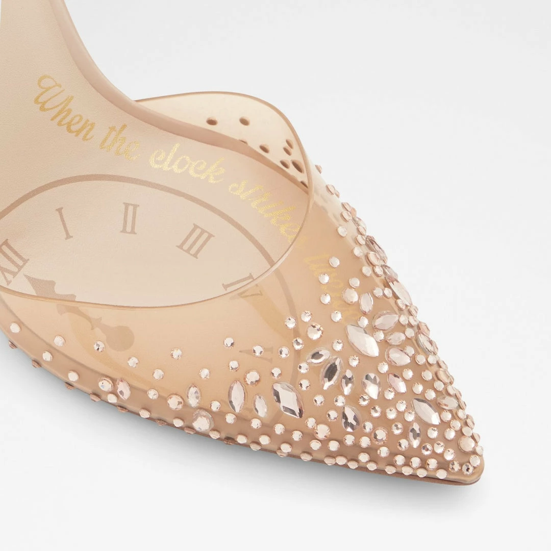#Style notes *Step into your very own glass slippers. This fairytale-inspired transparent pump with subtle iridescent details and clear ankle strap will inspire the magic in you. #Details * High heel shoe * Pointy toe * Block heel * Buckle closure * Rhinestone embellishment * Colour Bone #Materials *Upper: Synthetic *Sole: Rubber