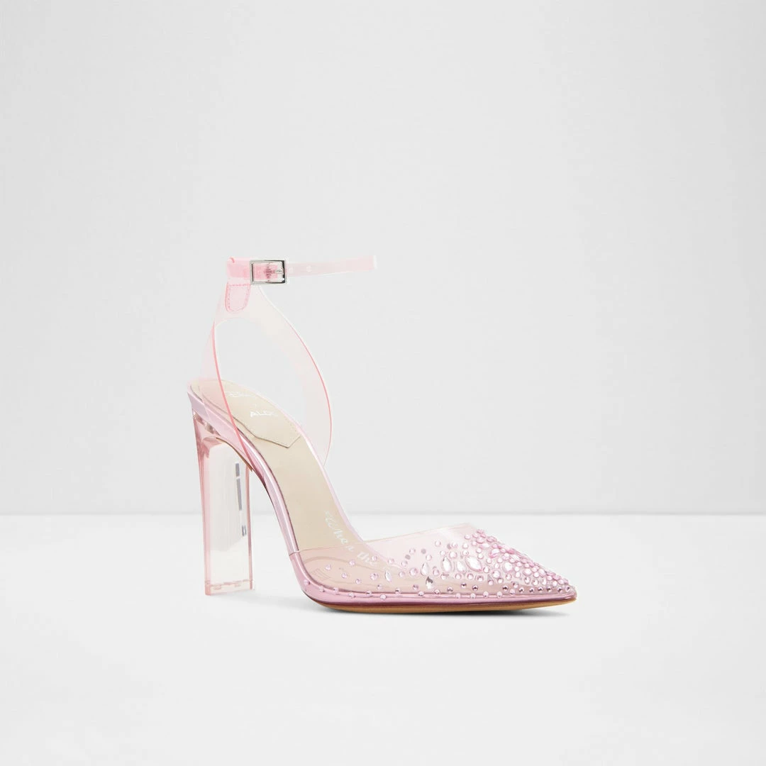 #Style notes *Channel your inner Cinderella in our transparent pumps adorned with iridescent rhinestones and a delicate ankle strap. You’ll be the belle of the ball in our princess worthy pumps fit for all your special occasions. #Details * Colour Light Pink #Measurements *Heel height: 4.25 inch