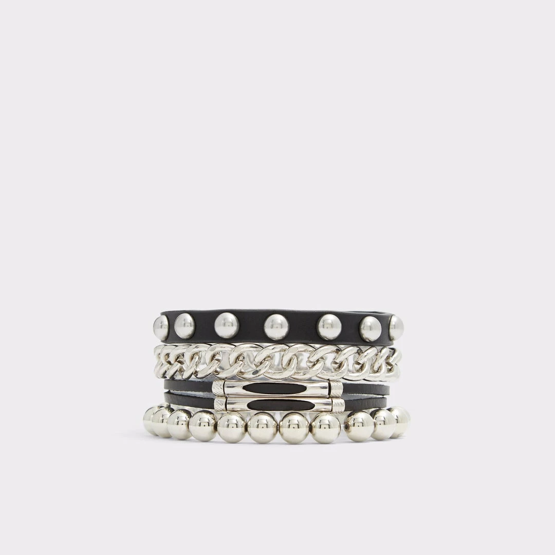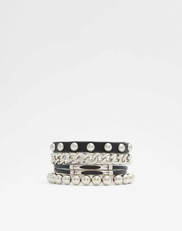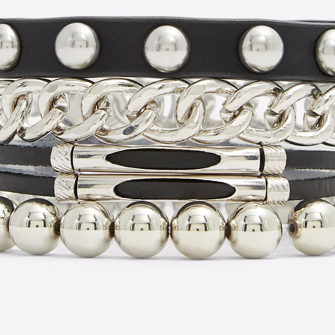 #Style notes *Posh meets punk in this set of studded cuffs, thick chain, and leather bracelets. #Details * Bracelet * Colour Black-Gold Multi