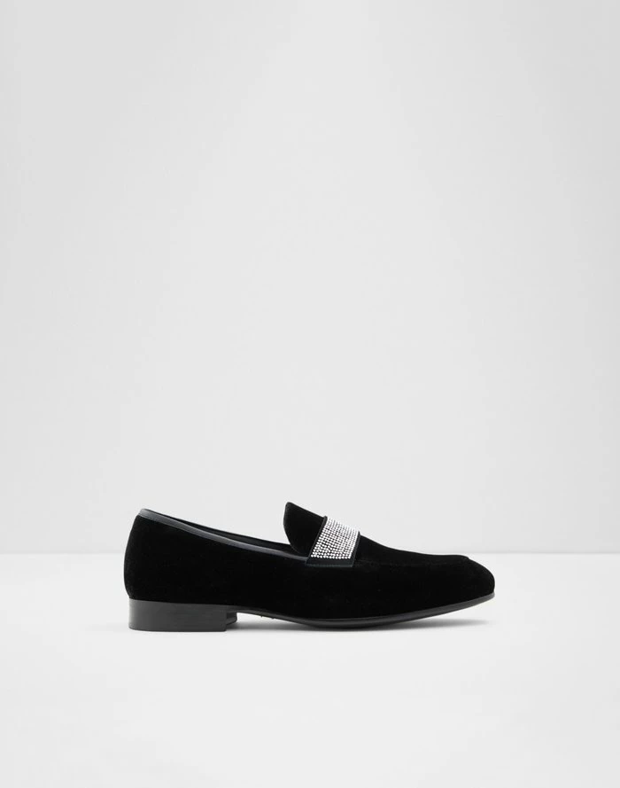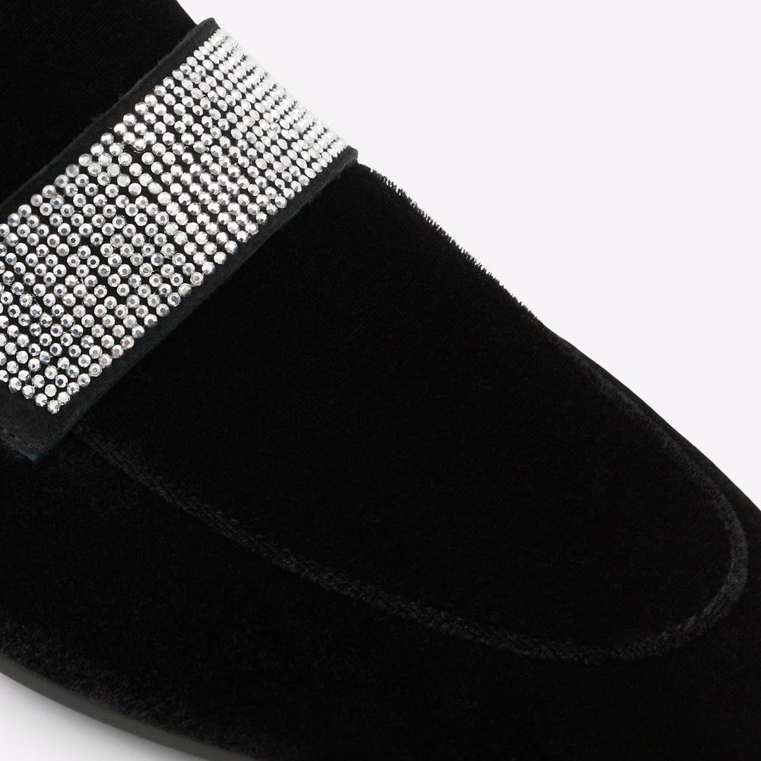 #Style notes *Be bold, be ready. Featuring a sleek almond toe and luxe details, these showstopping loafers were designed to impress and make a glam statement! #Details * Loafer * Almond toe * Slip on * Keeper ornament * Colour Black #Materials *Upper: Textile *Sole: Rubber