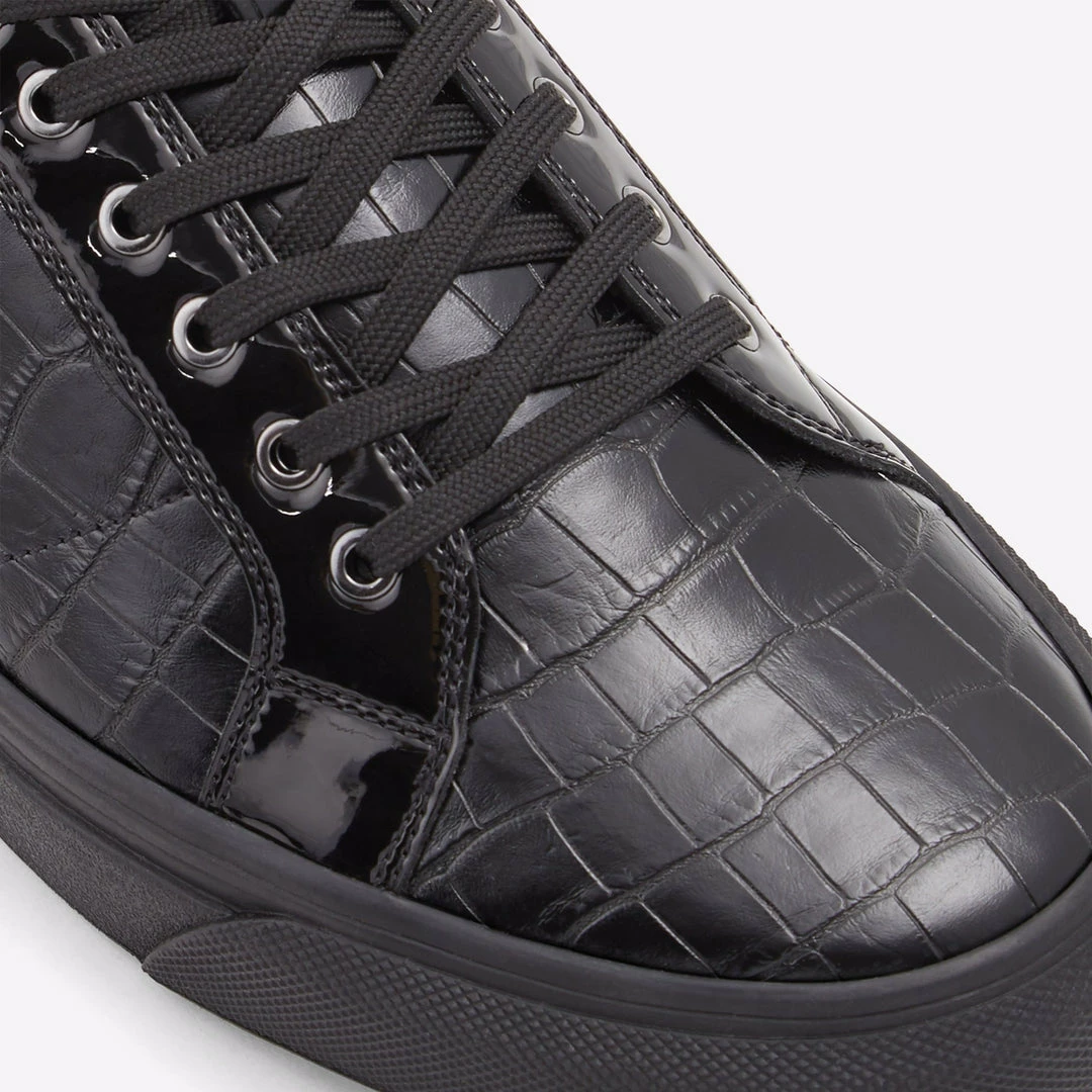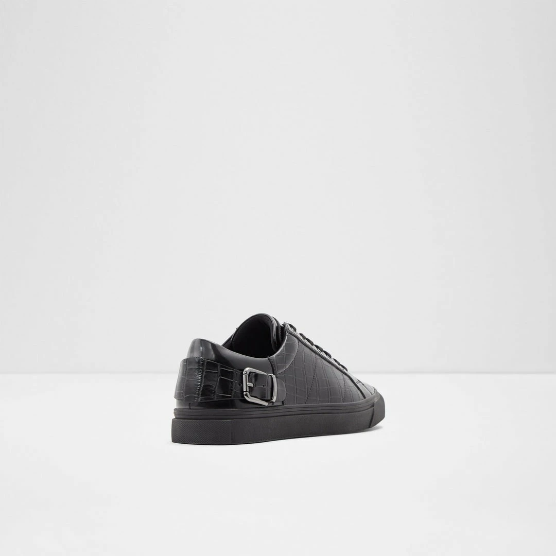 #Style notes *Up your street style with these sleek crocodile shoes designed to make a statement. With a slick monochromatic look, a sturdy cup sole and an accent buckle ornament, these low top sneakers are taking casual shoes to the next level. #Details * Low top sneaker * Round toe * Laces closure * Buckle closure * Colour Black #Materials *Upper: Synthetic *Main: Crocodile Skin *Sole: Rubber