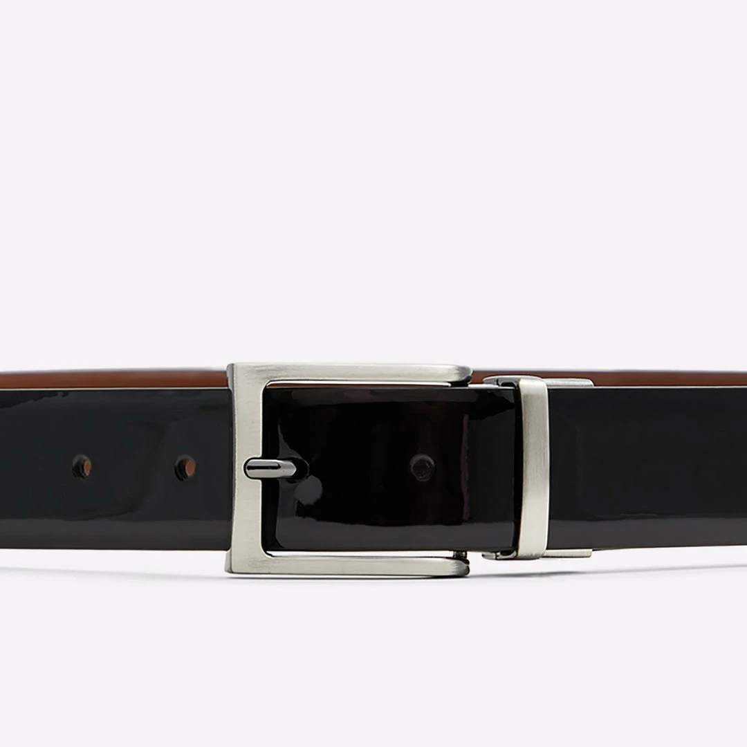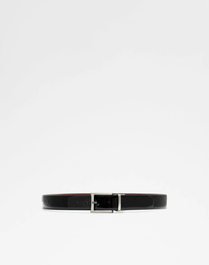 #Style notes *Reversible leather belt with open metal buckle. One side of the belt is black whilst the reverse side of the belt is brown. #Details * Belt * Colour Black