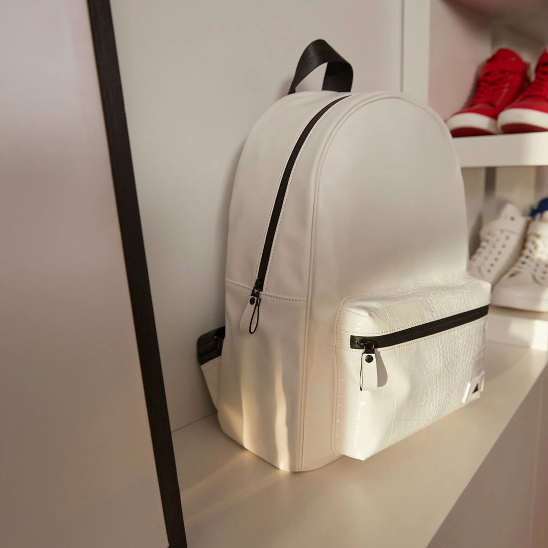 #Style notes * #Details * Backpack * Zipper closure * Interior compartments * Exterior front zip pocket * Adjustable shoulder strap * Colour White #Materials *Main: Synthetic #Measurements *Handle Drop Lenght: 10.0 cm *Strap Drop Length: 53.0 cm
