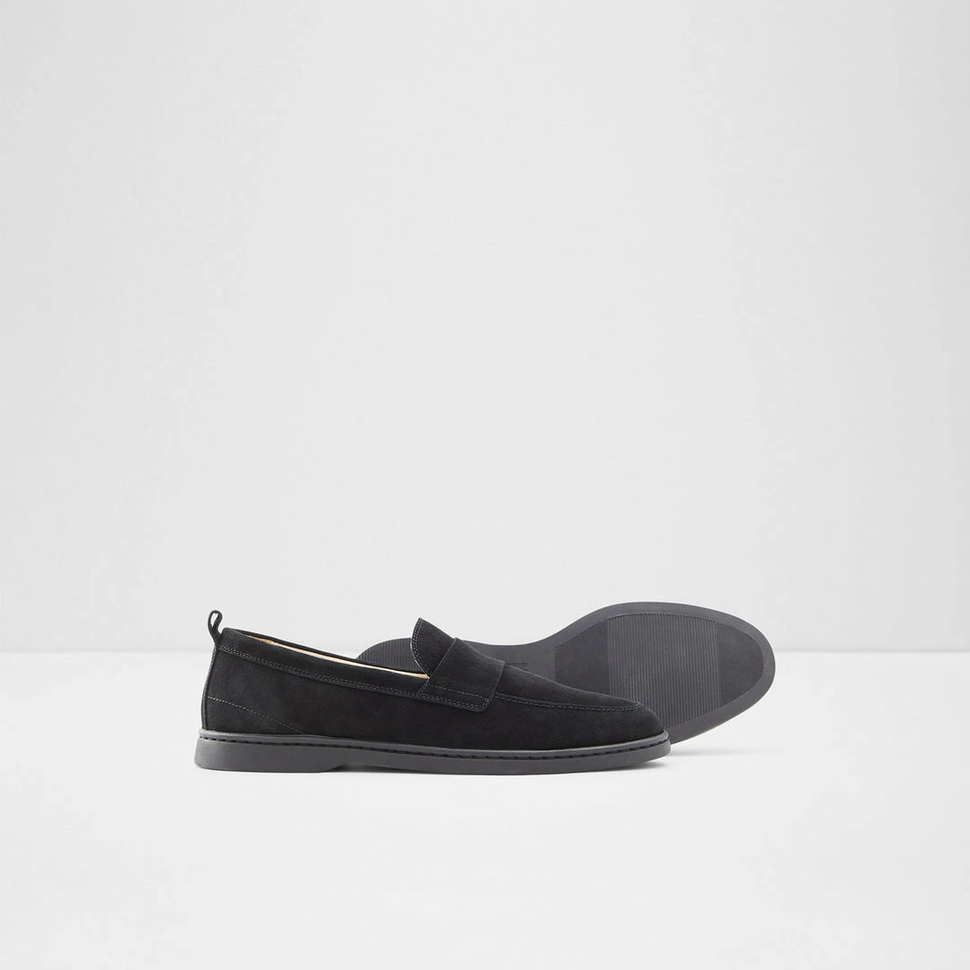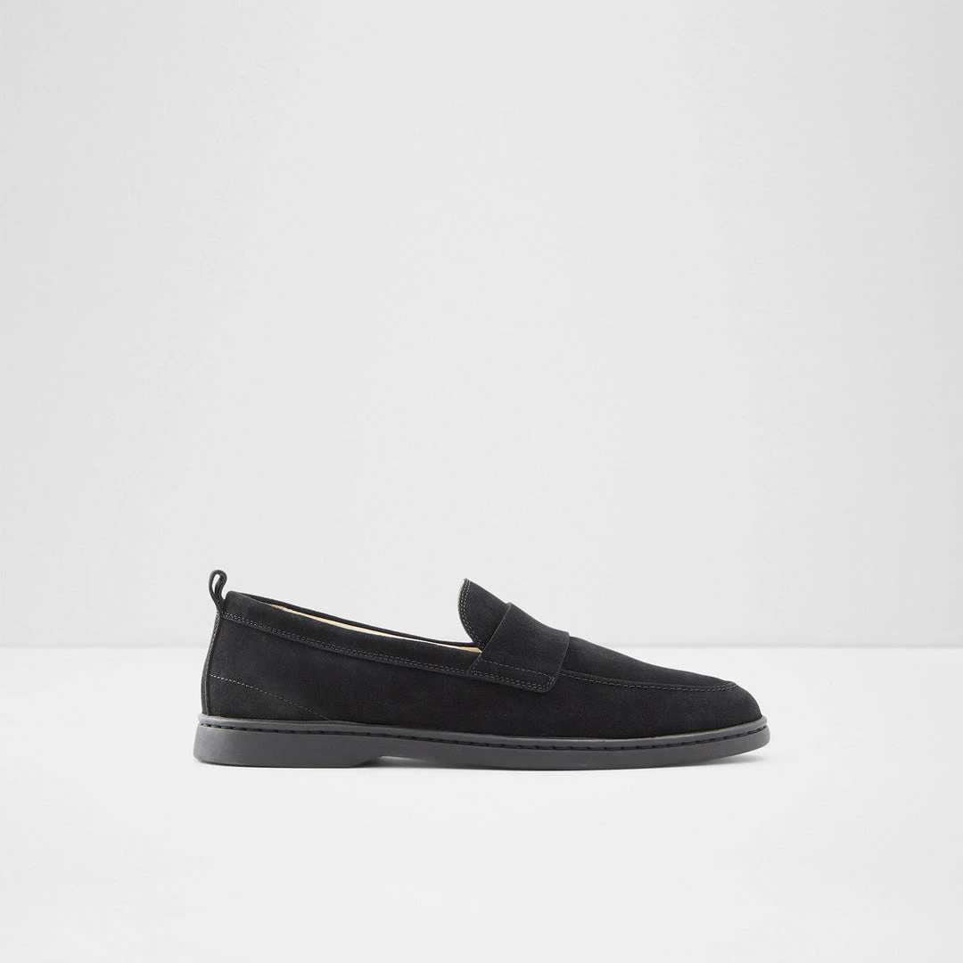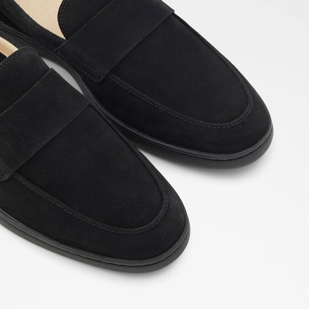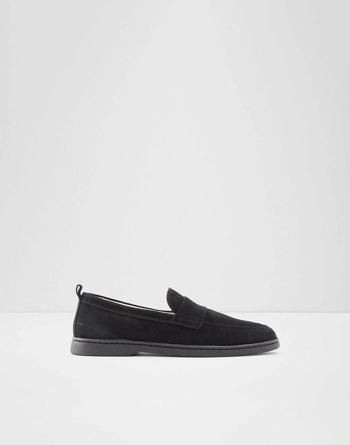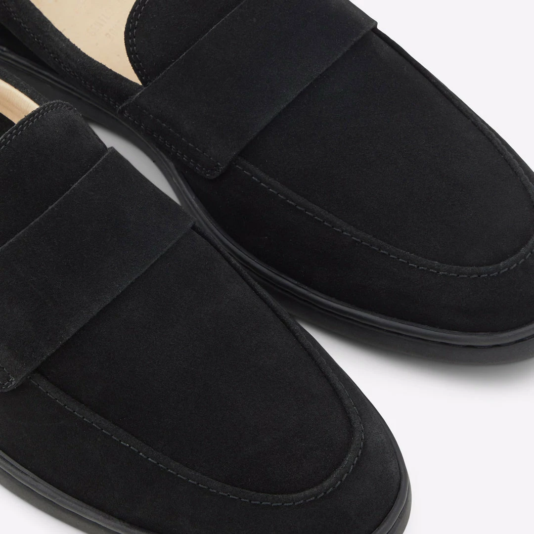 #Style notes *For your next fancy affair, why not opt for these nubuck leather loafers? Equipped with a refined almond toe, these slip-on dress shoes pair wonderfully with tailored suits. #Details * Loafer * Almond toe * Slip on * Colour Black #Materials *Upper: Leather *Sole: Rubber #Measurements *Heel height: 2.0 cm *Platform height: 1.0 cm
