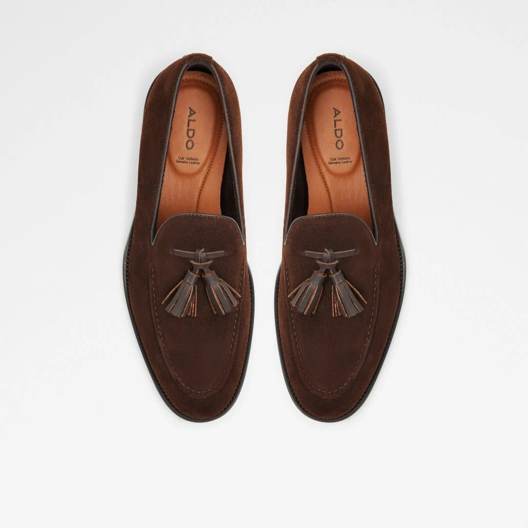 #Style notes * #Details * Loafer * Closed almond toe * Slip-on * Tassel ornament * Colour Brown #Materials *Upper: Leather *Main: Suede *Sole: Rubber #Measurements *Heel height: 0.5 cm