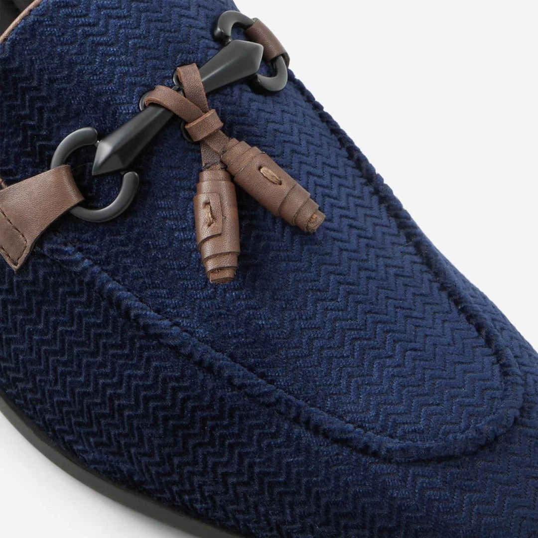 #Style notes *Obtain maximum style with minimal effort in these rich velvet loafers adorned with a sleek ornament. #Details * Loafer * Almond toe * Slip on * Colour Navy #Materials *Upper: Textile *Sole: Rubber