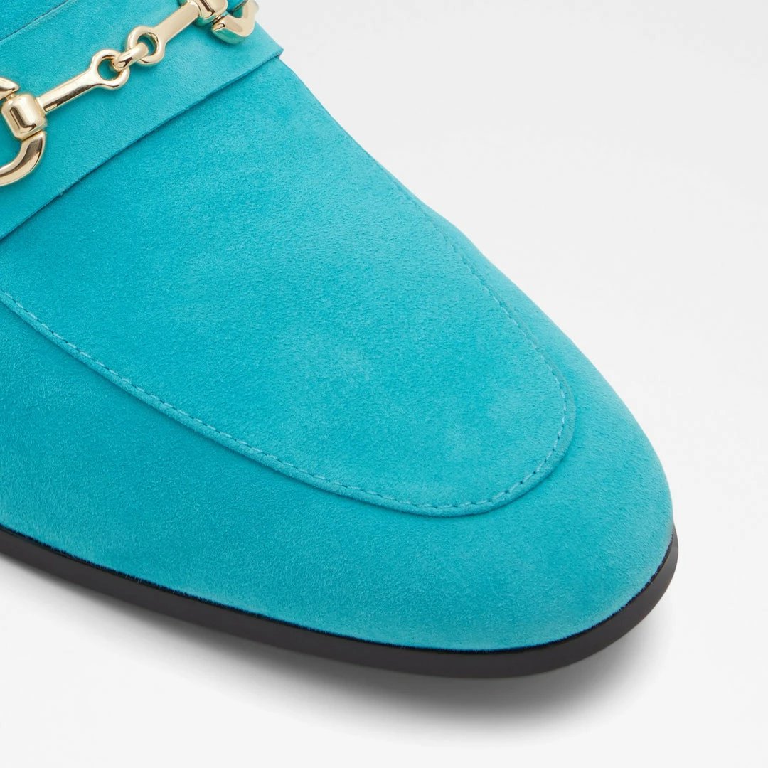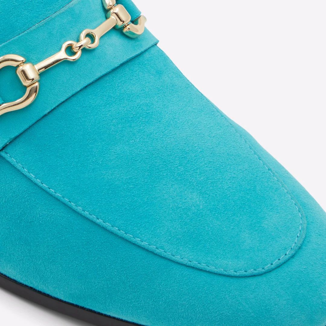 #Style notes * A sharp shoe for a sharp dreser, these leather loafers will effortlessly upgrade any outfit. Designed with a metal ornament for added charm.#Details * Loafer * Closed almond toe * Slip on * Metal ornament * Colour Turquoise #Materials *Upper: Leather *Sole: Rubber #Measurements *Heel height: 0.5 cm