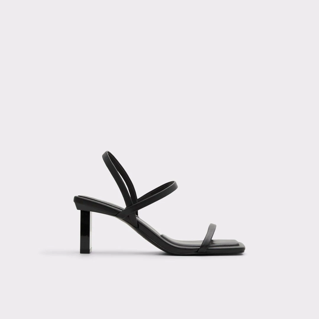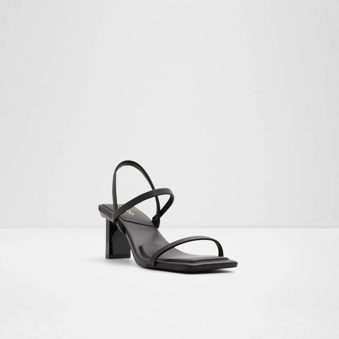 #Style notes *These sling back heels with a modern square toe deserve a coveted spot in your wardrobe. #Details * Sling back heeled sandal * Open square toe * Slip-on * Colour Black #Materials *Upper: Synthetic *Main: Smooth *Sole: Rubber #Measurements *Heel height: 2.5 cm