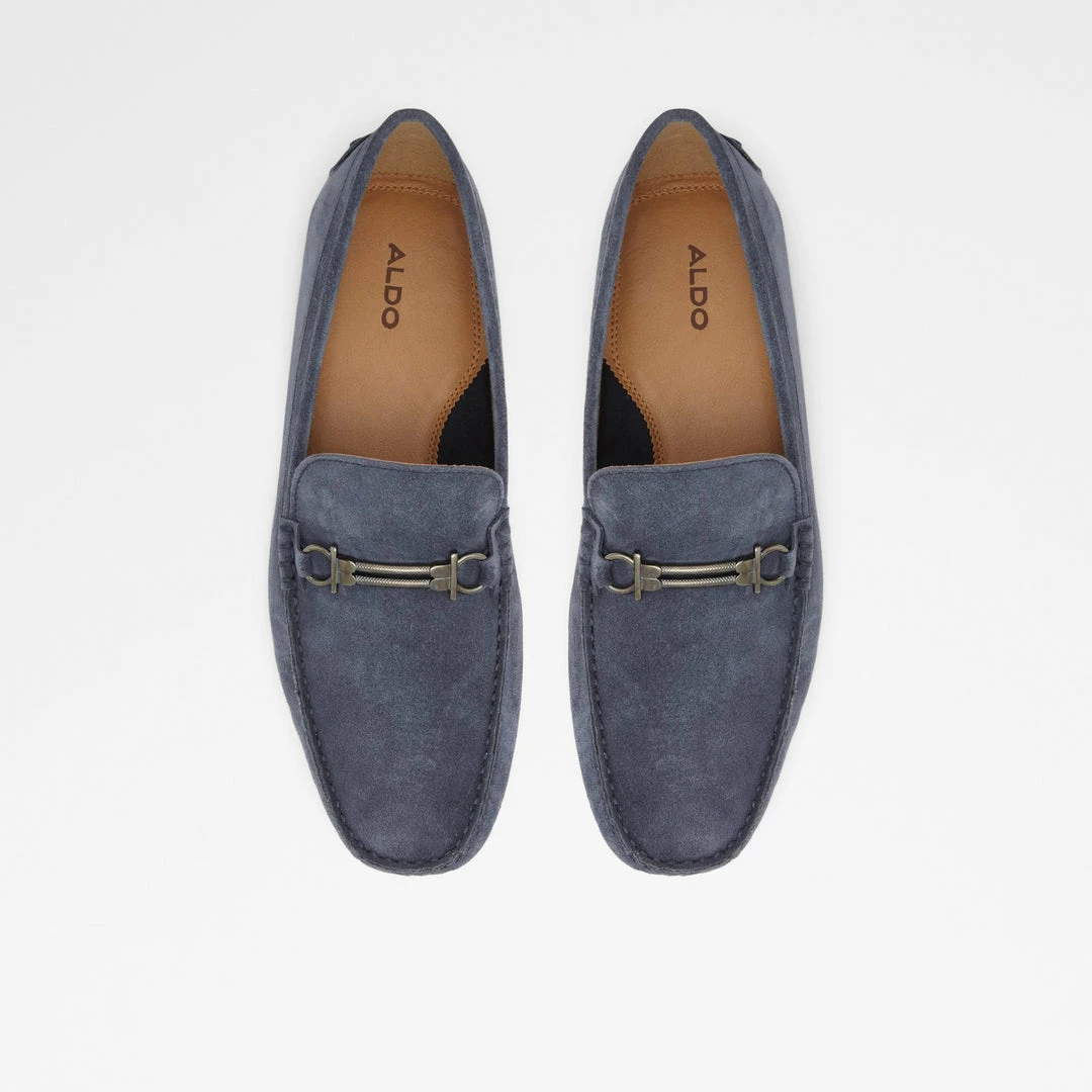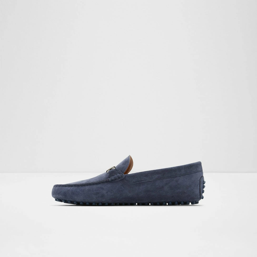 #Style notes *With a chic metal ornament and trendy square toe, these cool suede drivers grounded on pebbled outsoles have future-favorites written all over them. #Details * Driving shoe * Square toe * Slip on * Metal ornament * Colour Navy #Materials *Upper: Leather *Main: Suede *Sole: Rubber