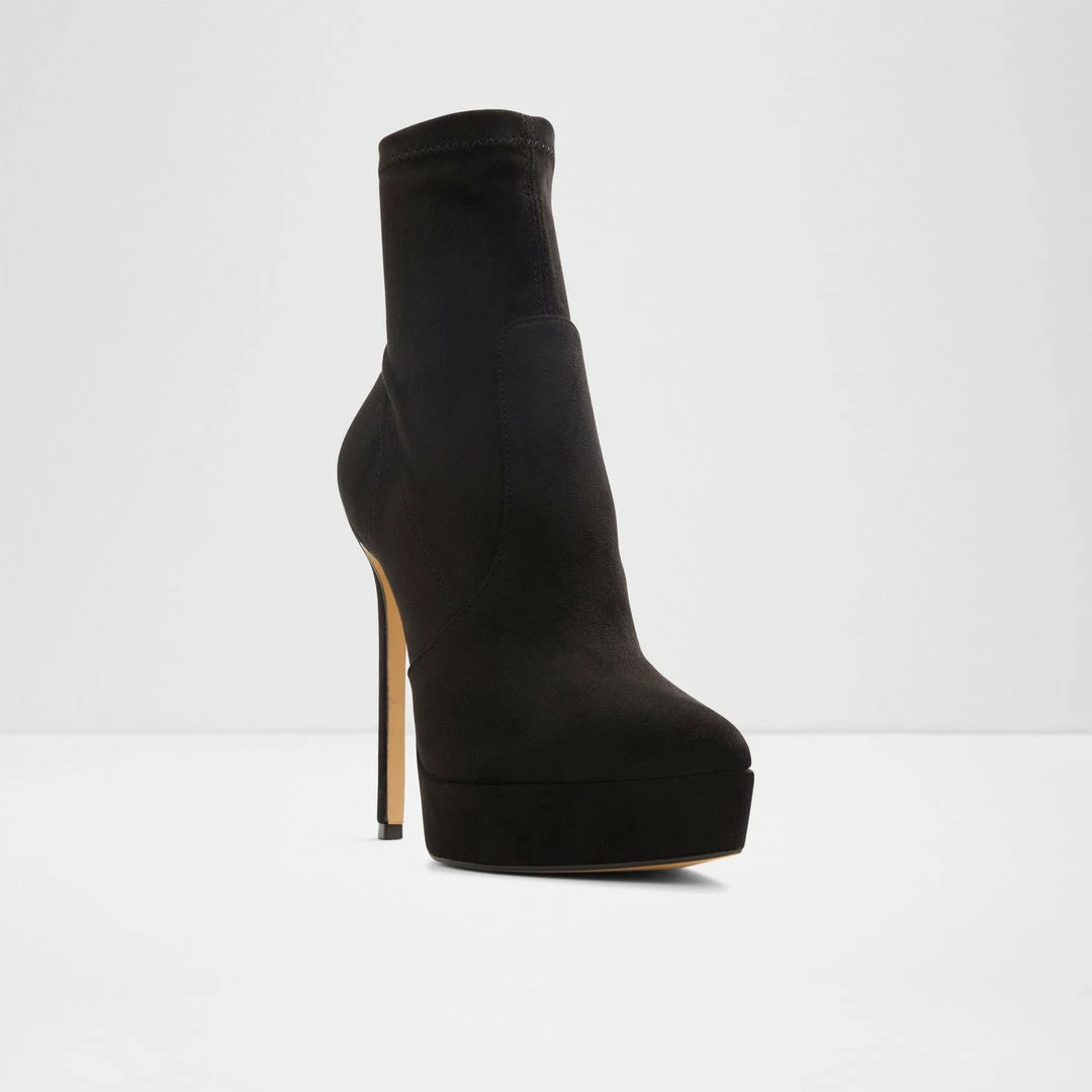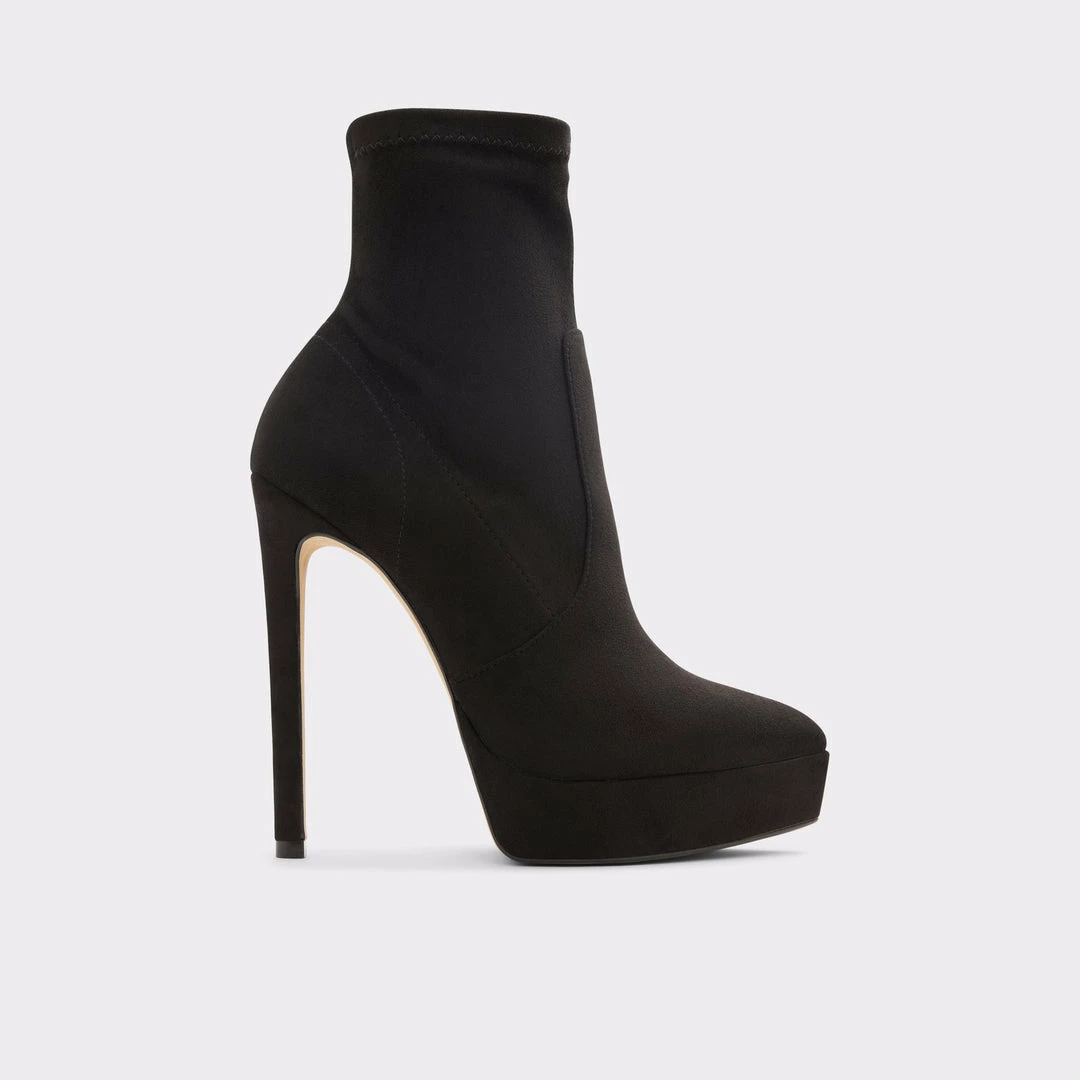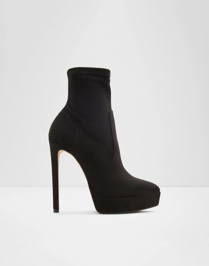 #Style notes *Add some edge to your looks with these platform ankle boots complete with a striking stiletto. #Details * Ankle boot * Closed pointy toe * Stiletto platform * Zipper closure * Colour Black #Materials *Upper: Textile *Main: Microfiber *Sole: Rubber #Measurements *Heel height: 5.5 cm *Platform height: 1.75 cm *Shaft Height: 4.5 cm