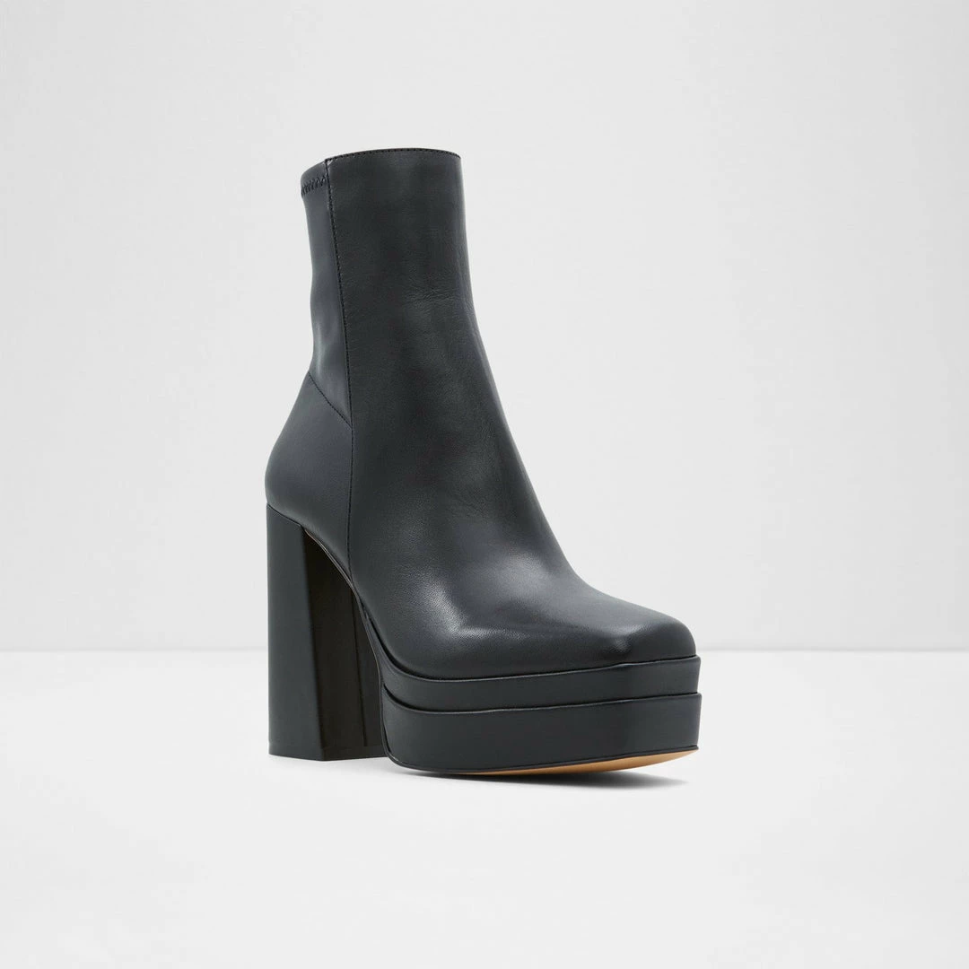 #Style notes *Reach new heights in these stunning platform ankle boots designed with a striking block heel. #Details * Platform ankle boot * Closed square toe * Flatform * Zipper closure * Colour Black #Materials *Upper: Synthetic *Main: Smooth *Sole: Rubber #Measurements *Heel height: 4.5 cm *Platform height: 1.5 cm *Shaft Height: 5.5 cm