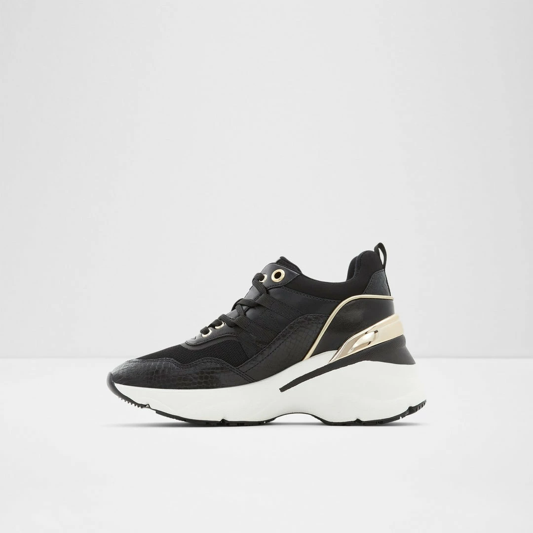#Style notes *Inspired by faves from the past (hello, dad shoes), these chunky wedge sneakers are all leveling up your style with bold design and fun details. #Details * Low top sneaker * Round toe * Wedge heel * Laces closure * Colour Black #Materials *Upper: Synthetic *Sole: Rubber #Measurements *Heel height: 3.0 cm