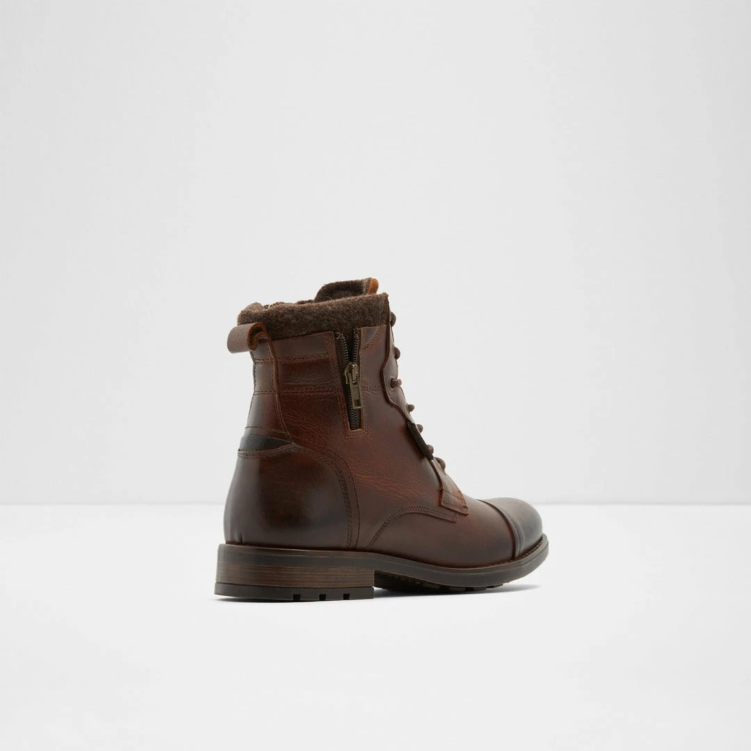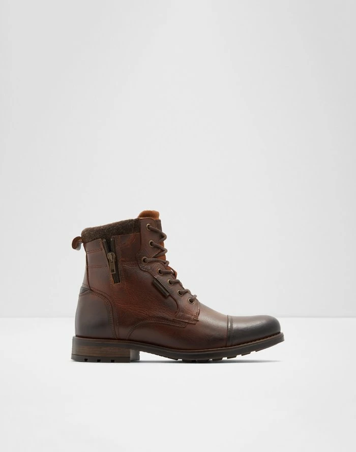 #Style notes *For durable winter boot made to bear the brunt of wear and tear, opt for this military-inspired ankle boot, featuring a lace-up vamp, and knitted fabric collar, for added warmth. Set on a textured rubber sole to grip on tough terrain. #Details * Ankle boot * Round toe * Laces closure * Colour Dark Brown #Materials *Upper: Leather *Sole: Rubber