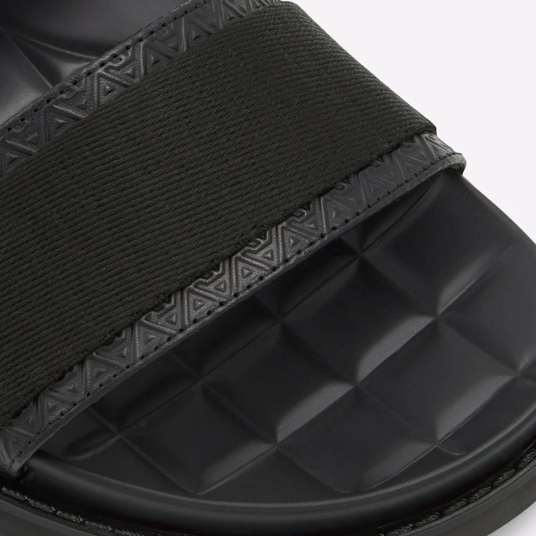 #Style Notes *Sweltering summer days call for an adventure. Free your toes in style with these outdoorsy yet dressy slides. PS. They’re also pillowy – like walking on a cloud! #Details *Colour: Black *Heel Height: 0.00 In (0.00 Cm) *Heel Type: Flat Or No Heel #Materials *Main Material: Textile *Sole Material: Thermo Plastic Rubber