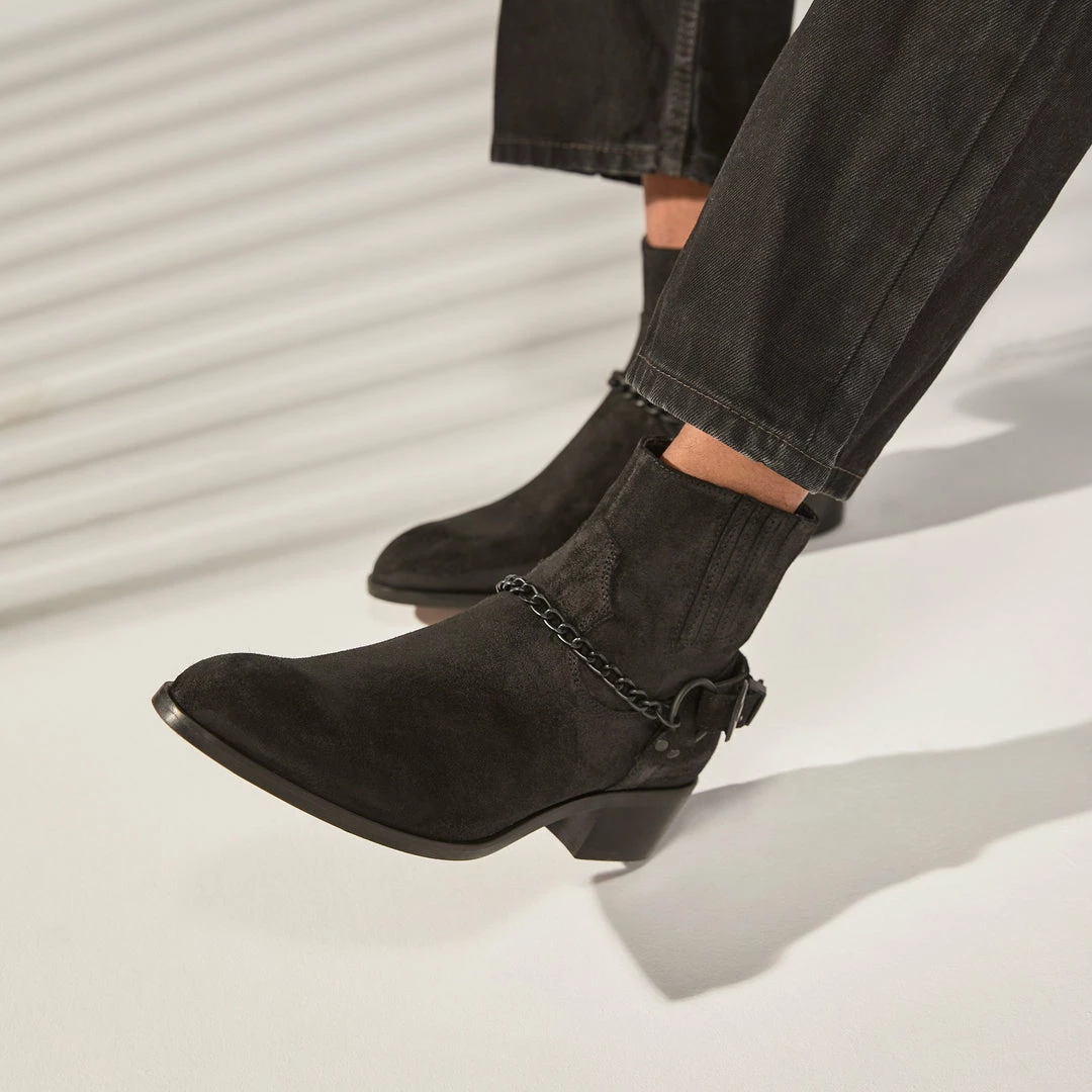 #Style notes *Trendier than ever, the classic chelsea boot gets a little style refresh thanks to the ultra sleek appeal of these decorative chains. #Details * Chelsea boot * Round toe * Zipper closure * Decorative chains * Decorative chains * Colour Black #Materials *Upper: Leather *Sole: Synthetic #Measurements *Heel height: 0.5 cm