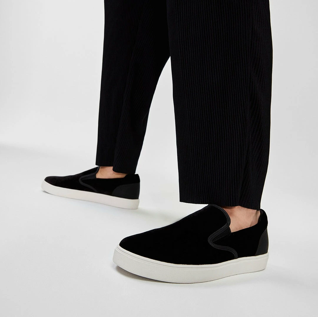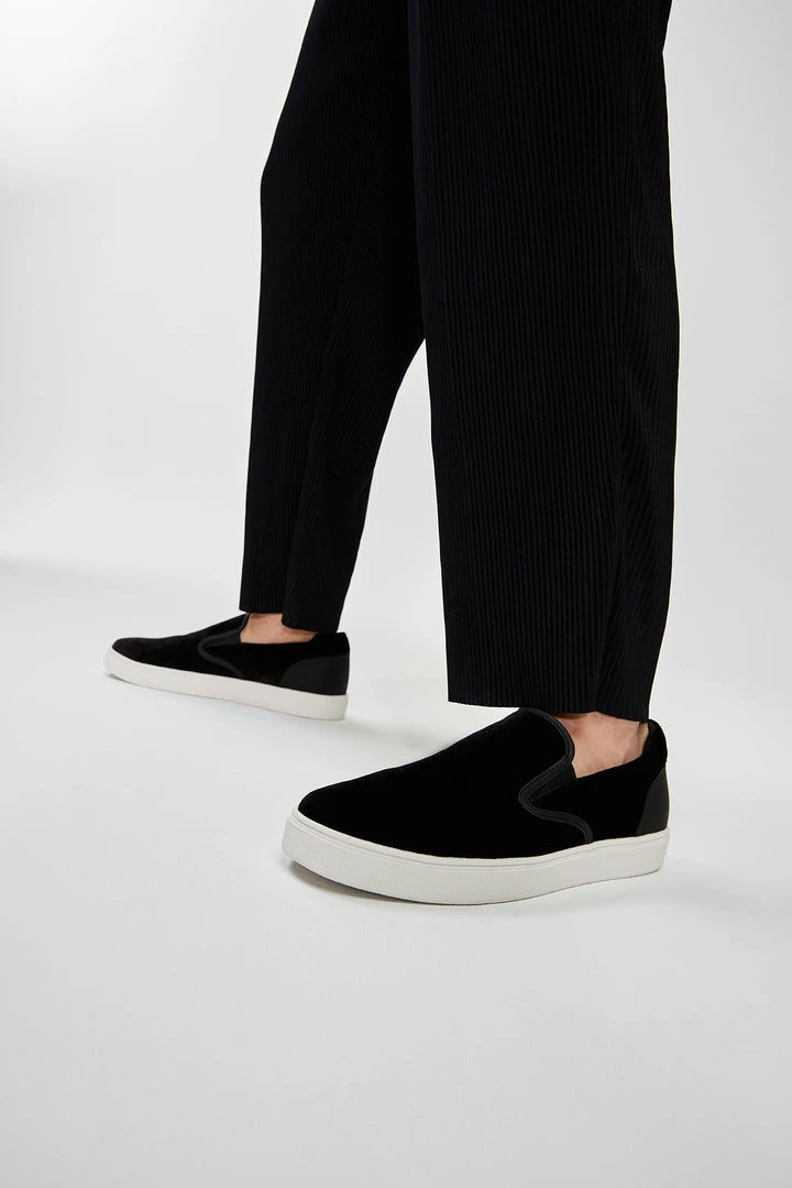 #Style notes *No laces, no problem! These easy on, easy off slip-on shoes were made for effortless, everyday wear. #Details * High top sneaker * Closed round toe * Cup sole * Slip-on * Lightweight * Colour Black #Materials *Upper: Textile *Main: Velvet *Sole: Rubber