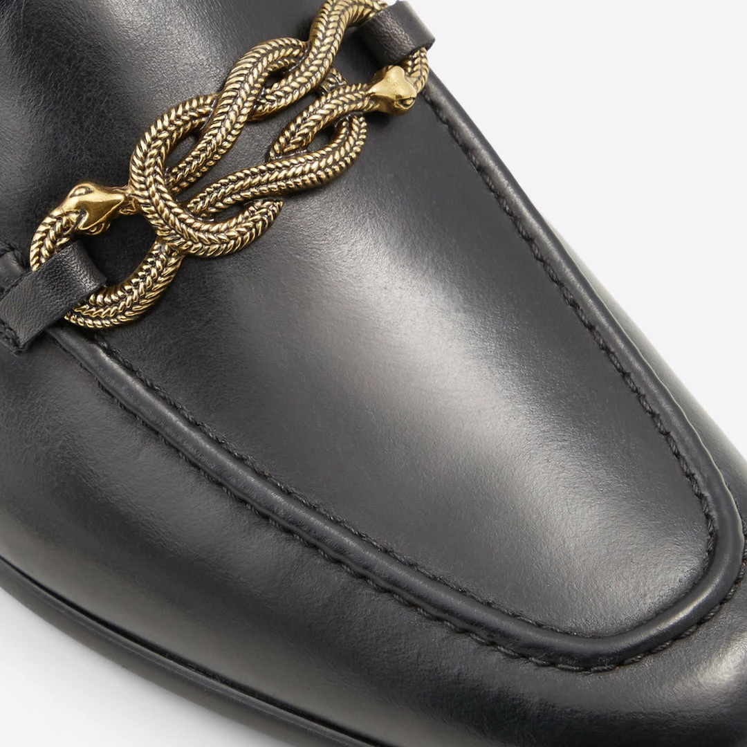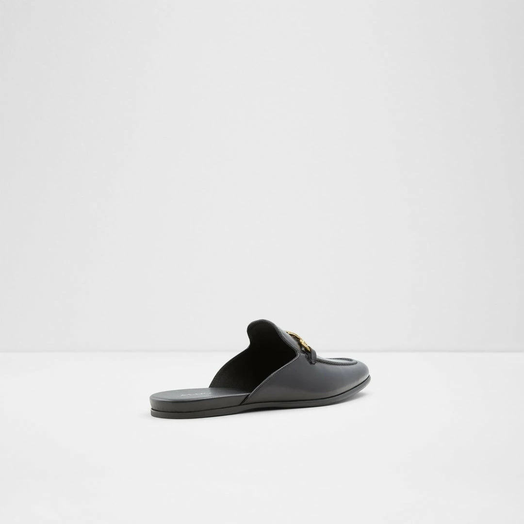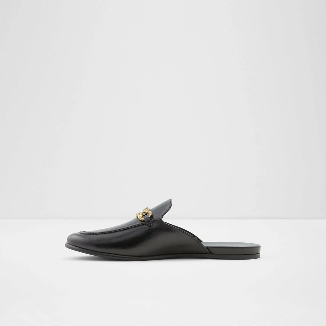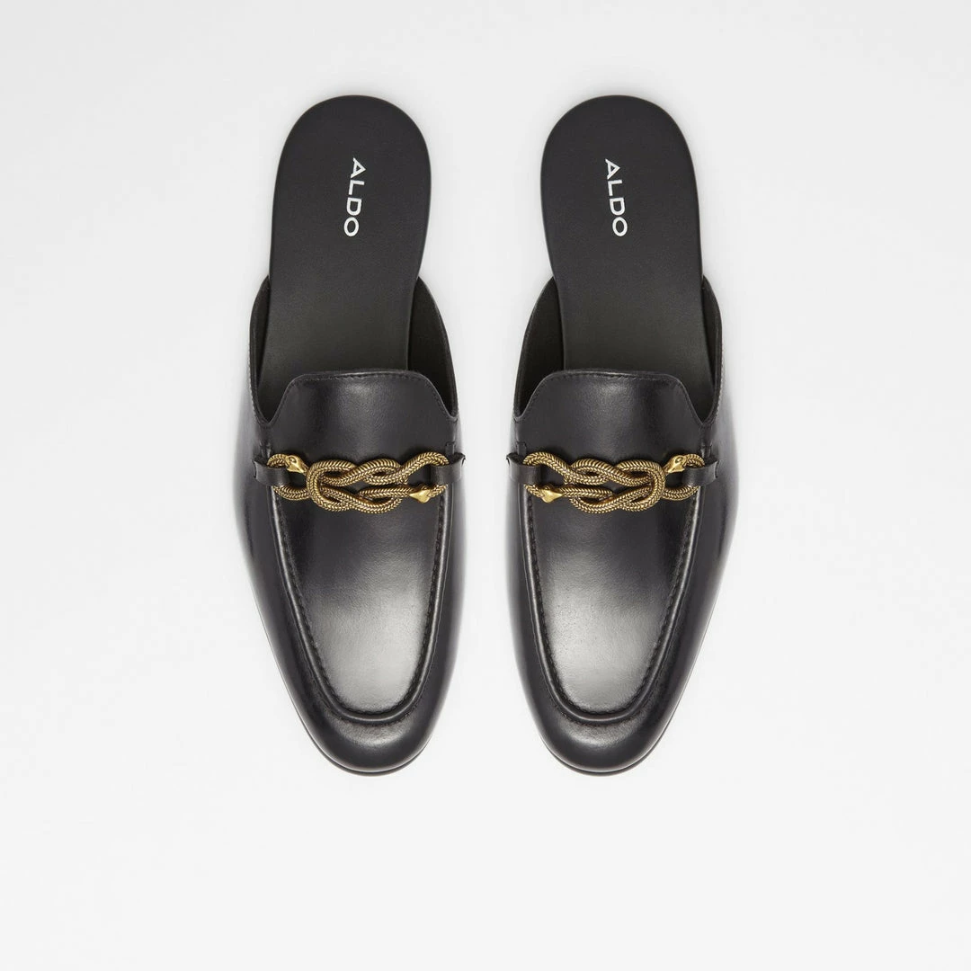 #Style notes *Tailored suits and tapered trousers pair handsomely with these chic smooth leather loafers. With everything from metal accents to a modern almond toe, these dress shoes meet all your formal wear needs. #Details * Mule loafer * Almond toe * Slip on * Metal ornament * Metal ornament * Colour Black #Materials *Upper: Leather *Sole: Rubber